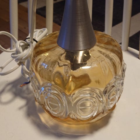Anden loftslampe, Vintage opalglas lampe, Nostalgi og vintage lampe i hvidt opalglas med gevind og specielle mønstre.