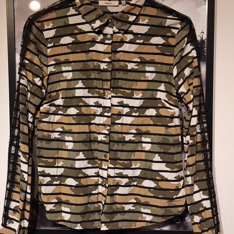 Skjorte, Retro, str. 42, Næsten som ny, Fed Retro militærskjorte, Upcycled med de fineste broderier