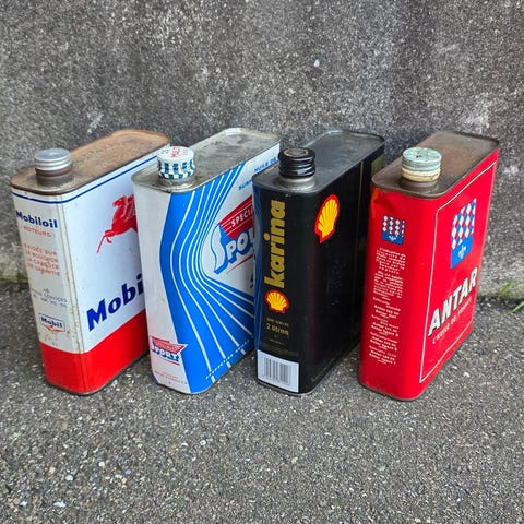 Dåser, Beholdere til olivenolie, Flotte græske metalbeholdere til olivenolie.