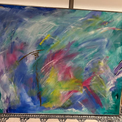 Andet, Lotte Linnet, motiv: Abstrakt, b: 40 h: 50, Rigtig fint maleri af Lotte Linnet. Har hængt i et ikke ryger hjem. Kan ved salg afleveres på ruten fra Herning til Aarhus.