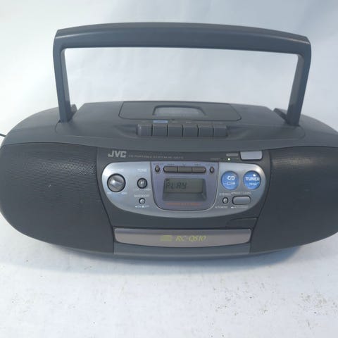 Boomblaster , JVC, JVC RV-NB1, God, JVC Boomblaster RV-NB1 CD, Radio & Guitar indgang JVC-musikafspilleren med fuld funktioner, men alligevel cool og alsidig, er et bærbart musiksystem, der er velegnet til at tage alle dine sange med og levere kvalitetslyd med venner og familie. Da denne JVC RV-NB1 kommer med en AM- og FM-tuner, kan du dreje drejeknappen til dine foretrukne lokale radiostationer, når du har brug for det. Denne JVC kassette boombox har en digital tuner, der gør valg af stationsfrekvenser intuitivt og præcist. JVC-musikafspilleren er alsidig med understøttelse af MP3-, ACC-, WMA-, MPEG1- og DivX-filformaterne, så du kan drage fordel af dine downloadede musikfiler. Du kan holde dine melodier tændt i timevis, da denne JVC RV-NB1 tager 10 D batterier. Denne JVC kassette boombox hjælper dig med at dreje op og høre Compact Discs til fester eller picnics ved hjælp af dens Compact Disc afspiller. Ydermere gør enkelt kassettebåndoptageren på JVC musikafspilleren det nemt for dig at tage dine yndlingskassetter med når som helst og hvor som helst. Denne JVC RV-NB1 er transportabel og praktisk, så du vil være i stand til at tage den med til musik på farten og bruge den hvor som helst du har brug for. Denne JVC kassette boombox er i stand til at producere nok lydstyrke til næsten enhver situation, med 12 Watt udgangseffekt, som gør det muligt for dig at høre dine melodier og rytmer ved din ønskede lydstyrke. Kan hentes og testes i 2610 læs om specs her: https://support.jvc.com/consumer/product.jsp?modelId=MODL027366&pathId=37&page=3&archive=true