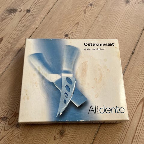 Monteres nemt for enden af en osteskærer og bruges til at skære skorpen af osten og kan også bruges til at åbne plast emballage.