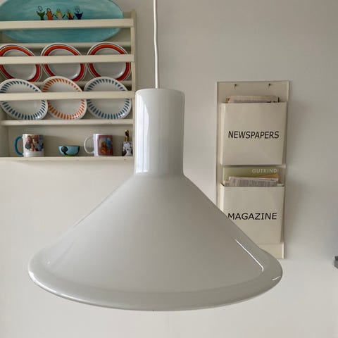 Pendel, Holmegaard, Teepee, Fin retro opalhvid Teepee pendel. 26 cm højde, 15 cm diameter.