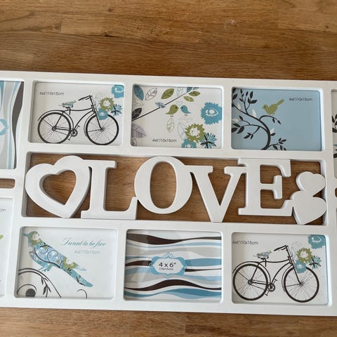 Søgeord: Collageramme, billedramme, passepartout, fotocollage, indretning, bolig.