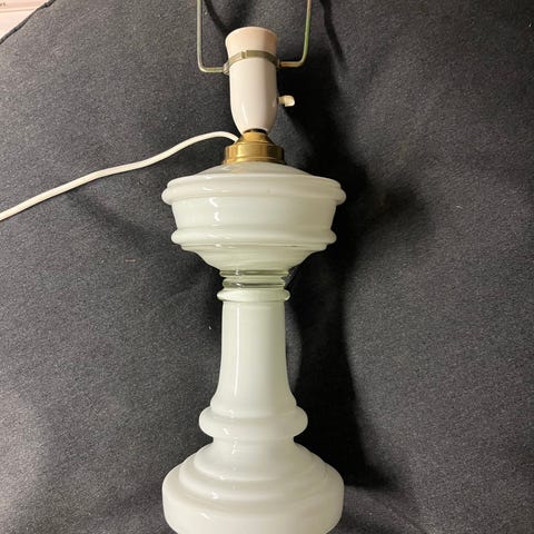 Lampe, Smuk Holmegaard bordlampe i opalineglas og messing.