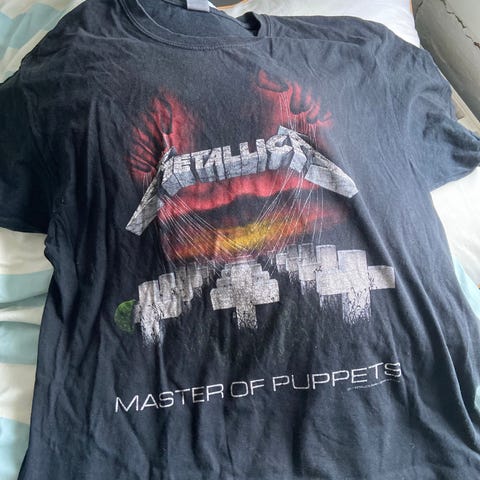 Den er trykt på en Yazbek t-shirt (som er som en Gildan model). Det er en størrelse L. Det betyder 54 cm målt fra armhule til armhule og 68 cm fra skulder og ned). Sælges fra røgfrit hjem.