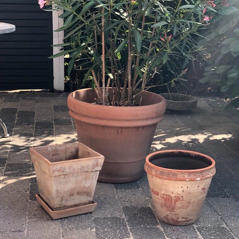 Have krukke, Fin firkantet lerpotte i terracotta. God stand. Pynter i haven. Mål:41x41x16 cm høj.