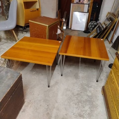 Sofaborde, 2 små sofaborde i hvid m træben. Har 2 stk. der ene har en mindre skade. Brugsspor på bordplade