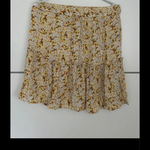 Sommer nederdel, str. 34, Pieces, Blå/hvid/gul, Polyester, God men brugt, Fin nederdel i lag fra pieces str xs. Kan også passes af str s. Elastikstykke ved taljen. Blå/hvid/gul, polyester.