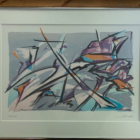 Litografi, Alfred Gockel, b: 78 h: 78, Litografi af Alfred Gockel i malet ramme.