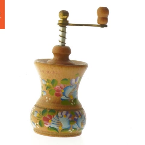 Plastik, Krydderikværne, Krydderikværne i gul plast, med mulighed for at indstille kværnens grovhed.