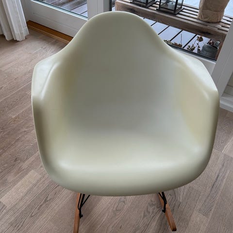 Gyngestol, andet, Eames, Smuk Eames gyngestol i plastik. Har stået på et loft, så den trænger til en klud. Men fejler intet. Så god som ny