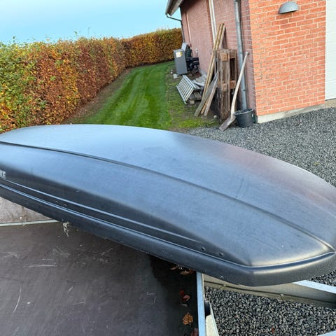 Tagboks, Thule, Thule tagboks i blanksort - fremstår som ny - inkl. tagbøjler til Audi - Quattro klistermærke kan fjernes.