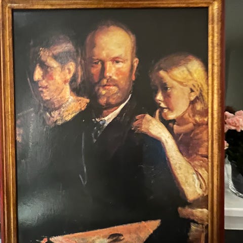 Tryk, Michael Anker, motiv: Børn på mark, b: 74 h: 63, Tryk