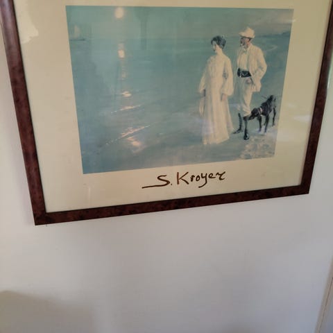 Tryk, P. S. Krøyer, motiv: Kvinde med hund, b: 70 h: 100, Reproduktion af Skagensmaleren P. S . Krøyer