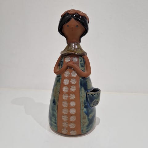 Sød svensk vintage keramik blomsterpige, med gul kjole.
