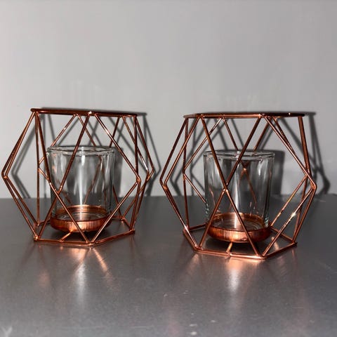 Lysestager, Ukendt, 2 store flotte lysestager i kobberfarve. Højden står på billedet.