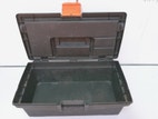 Værktøjskasse, Gedigen værktøjskasse i kraftig plastik med ekstra opbevaringsplads til små ting i låget.