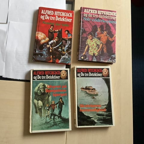 Alfred Hitchcock og de tre detektiver, Alfred Hitchcock, Forskellige bøger i serien: Alfred Hitchcock og de tre detektiver. Hardback. Forskellige udgaver. Lademann, Hasselbalch. Robert Arthur, William Arden, M.V. Carey m.fl.