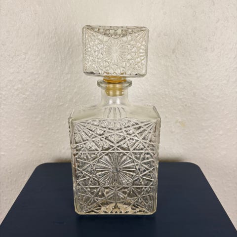 Meget smuk, rustik og tidløs karaffel til f.eks. likør, hedvine, cognac eller whisky, udført i tykt glas. Ingen skår, revner eller afslag.