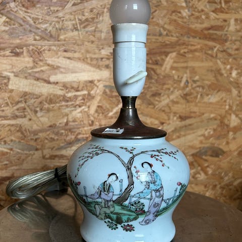 Anden bordlampe, Kinesisk 5-kantet lampe, Lampen er fra 1990’ erne. Selve lampen er i fin stand. Pære fatning samt holdegreb i lampe skærmen er desværre beskeder - derfor denne pris.