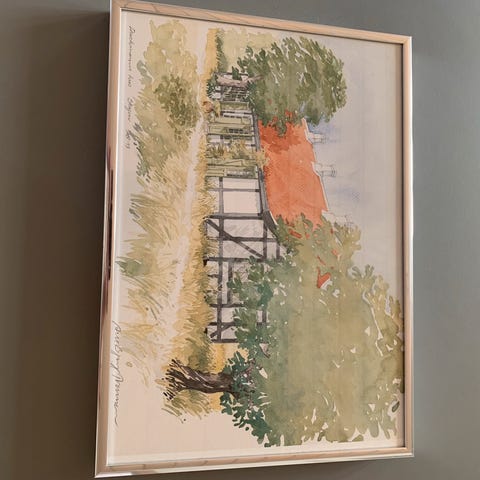Tryk, Ane Bjerg Thomsen, motiv: Huse, b: 45 h: 63, Vintage tryk af Ane Bjerg Thomsen