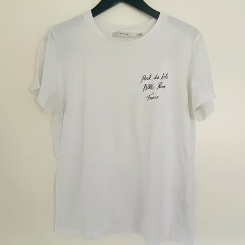 T-shirt, Ganni, str. 36, Cremehvid med tryk, Bomuld, God men brugt, Virkelig blød og lækker t-shirt fra Ganni i super kvalitet.