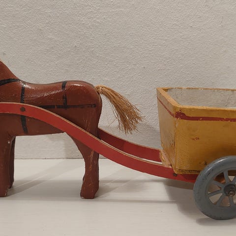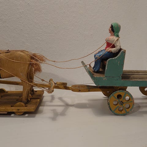 Legetøj, Fængselslegetøj: Vogn med hest. Ca 1930. L 54cm