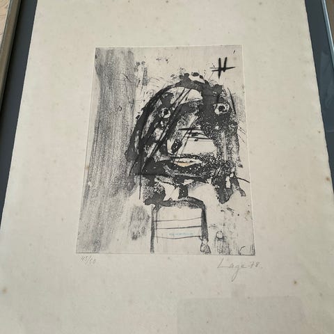 Farvelitografi, Leif Lage, motiv: Abstrakt, b: 37 h: 48