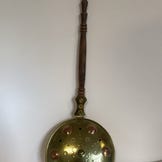 Helt fantastisk stykke nordisk historie - sengevarmeren i smuk skinnende messing med ekstra langt træskaft