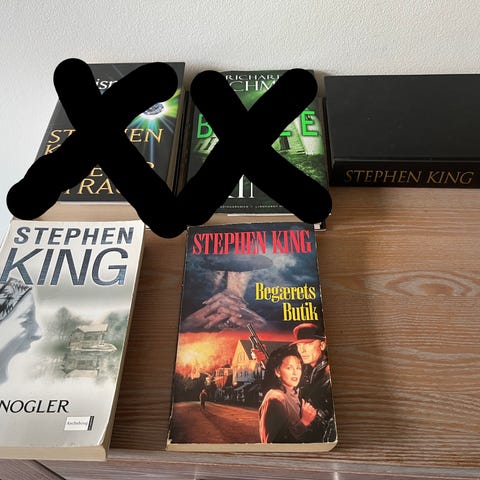 Stephen King bøger, Stephen King, genre: anden kategori, Mange forskellige Stephen King bøger. Hardback/Paperback/Softcover/Indbundne udgaver. Pæn/flot/fejlfri stand. Flere titler haves i mere end een udgave.