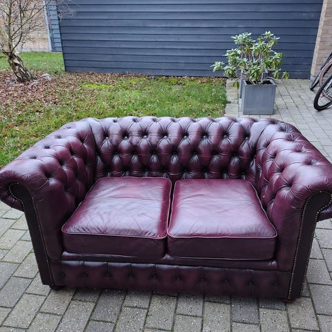 Sofa, læder, 2 pers. , Chesterfield, Sød lille sofa.