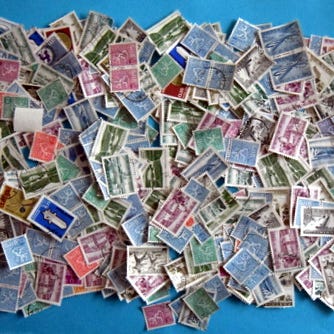 34 stk. ustemplede - med orig. lim,