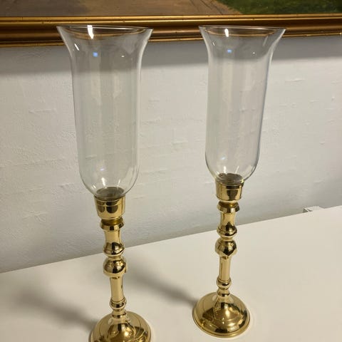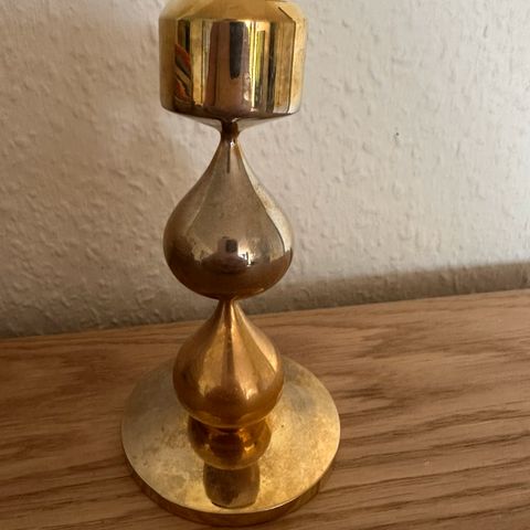 Lysestage, Messing/ guldbelagt, 2 flotte lysestager med 24 karat guldbelægning : Asmussen Design Danmark. Mål: 8 cm høj - 6 cm bred ved fod. Stagerne er i meget pæn stand - som nye. Afhentes på adressen mod kontant betaling.