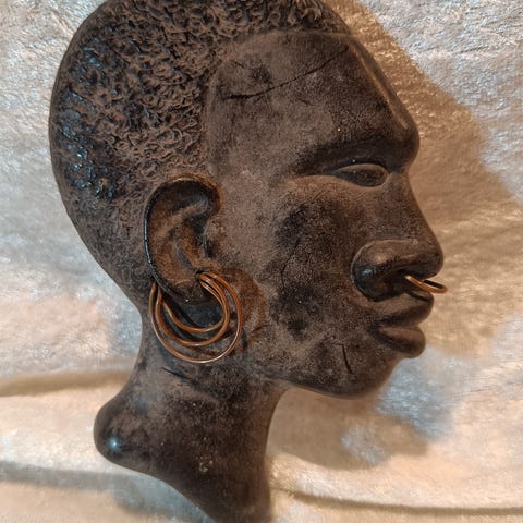 SAMT TRÆPIND DEKORERET MED PERLER OG FJER.
