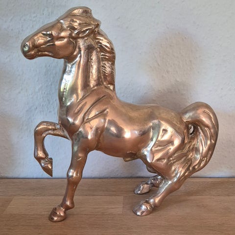 Masiv støbt messing Hest med vogn, Masiv støbt messing Hest med vogn og pænt tung 5.3 Kg og 50 cm lang og 28 cm høj og 160mm bred og hjulene kan dreje rundt og taget kan åbnes og der er plads et eller andet i den eks cigar alkohol drinks glas osv.