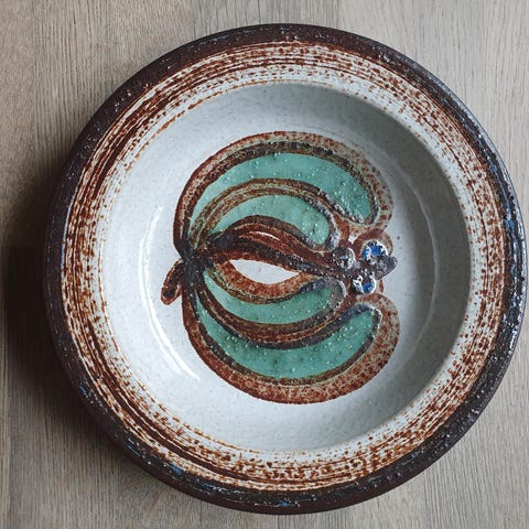 Stentøj, Søholm, motiv: Blomst, 2 skåle af Bornholmsk keramik. Ved forsendelse deles fragten.