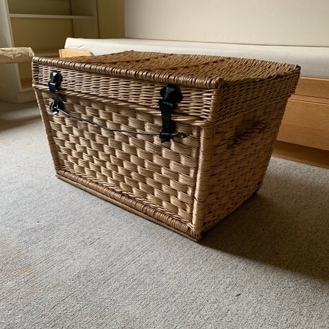 Kurvekuffert, Ukendt, Lille velholdt kurvekuffert. Udv. mål: l/b:32, dybde: 23 og højde: 11 cm. I perfekt stand. Den vil have godt af et koldt brusebad, hvilket forhindrer materialet i at udtørre. Pris: 100 kr. Har desuden en mini kurvekuffert til salg. Se mine andre annoncer.