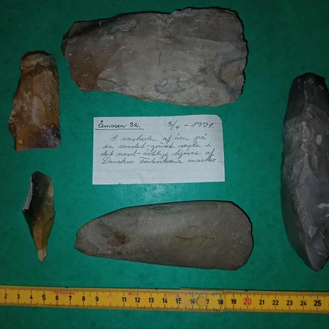 Proveniens: Hidrører samlingen af Kurt Petersen, oldsags illustrator og konservator hos Nationalmuseet(Kalundborg) Kurt gav øksen til sin søn i gave. Kurts søn havde en stor fin samling af oldsager og antikviteter og denne økse var en af de ældste objekter i samlingen(Kurts barnebarn arvede den efter sønnen og hun har solgt den til os.) Så det er første gang denne økse kommer i handlen.