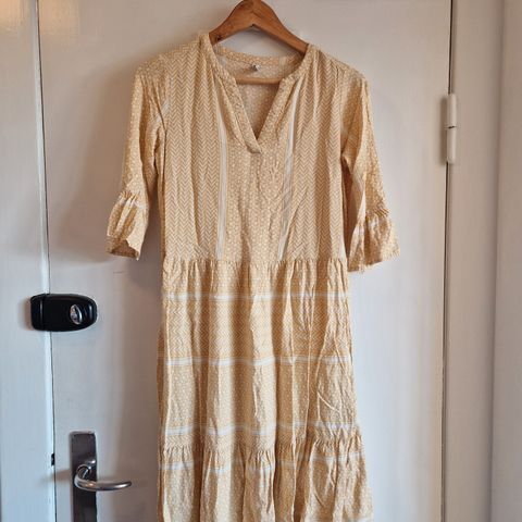 Skjortekjole XL, Grøn/hvid/sort/beige, Viskose. Kjole med 3/4 lange ærmer og bindebånd i livet.