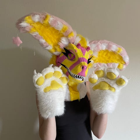Dino maske, Fursuit maske inkl poter