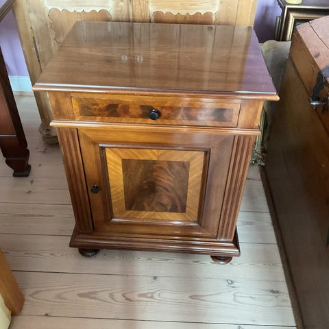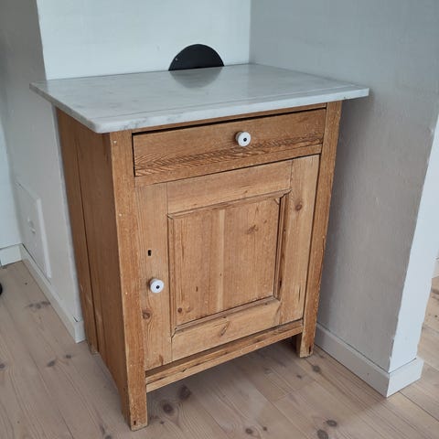 Servante, b: 79 d: 50 h: 87, Flot gammel malet servante. En skuffe og skab med en hylde.