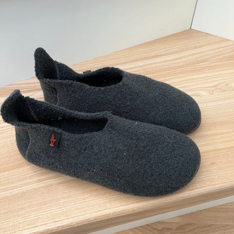 Hjemmesko, str. 25, Living Kitzbühel, unisex, Fine små hjemmesko i mørkeblåt uld og sandfarvet ruskind fra Living Kitzbühel. Brugt i en kort periode af 1 barn.