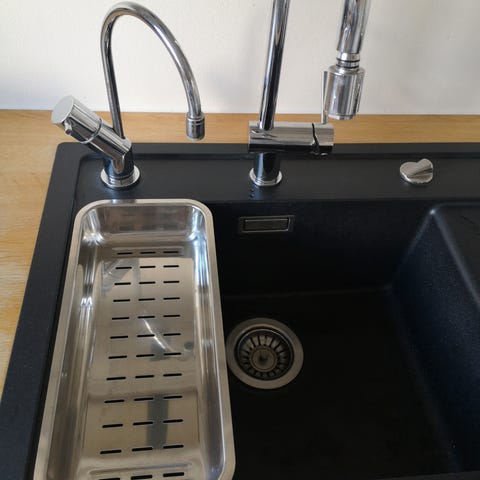 Kan hænge i vasken og anvendes, når der skal skylles grøntsager og frugt.