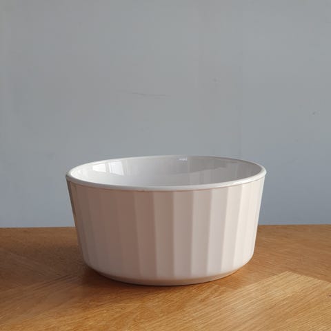 Soufflé skål, Milton Brook England, Klassisk hvid riflet soufflé skål.