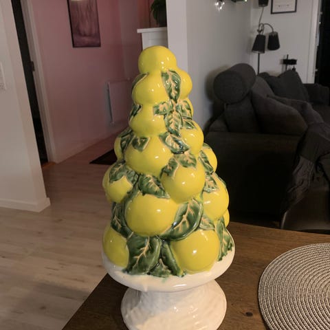 Citron vintageopsats, Italiensk, motiv: Citroner i "Kurv", Meget smuk gl. vintageopsats med citroner og citronblomster. Opsatsen er i perfekt stand.