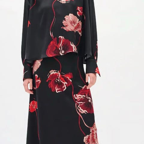 Flot, todelt sæt bestående af en lang, smal nederdel med for og slids bagpå, str. 38 i forskellige grå nuancer og en lang, bluse-jakke i samme farver, str. M. Nederdelens livvidde er ca. 74 cm. Begge dele er i perfekt stand. Sender gerne.