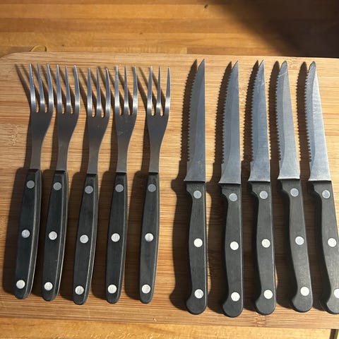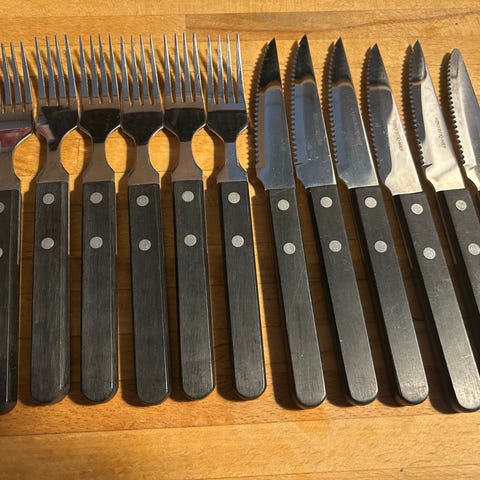 Grillbestik 12 dele, 6 stk. gafler og 6 stk. knive. Rustfrit stål med bakelit håndtag.