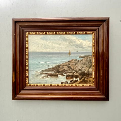 Tegning, Nordahl Grove, motiv: Sjællandsk kystlandskab, tegningen 295x215mm - signeret "Nordahl Grove 1868" "guldrammen" 30mm bred med ydre mål 375x315mm - fragt extra