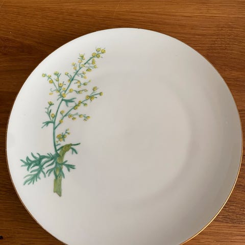 Porcelæn, Desserttallerkener, 2 stk med blomstermotiv. Ca 1930.